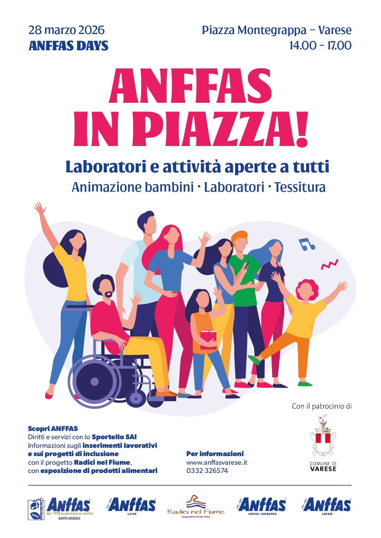 All’evento parteciperanno le associazioni ANFFAS di Busto Arsizio, Luino, Somma Lombardo e Varese, insieme a volontari, famiglie e persone con disabilità.